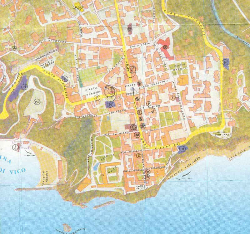 Ortsplan von Vico Equense, dem Standort des Gymnasium Marianum während der Studienfahrt in den Golf von Sorrent.