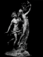 Der Mythos hat enorme Auswirkungen auch auf die bildende Kunst; bis heute werden Themen der antiken Sagen in Bildern und Statuen ausgedrückt. Das Bild zeigt die berühmte Statuengruppe Berninis in der Villa Borghese: Apoll verfolgt die keusche Daphne im Liebeswahn; das Mädchen verwandelt sich in ihrer Not in einen Baum.